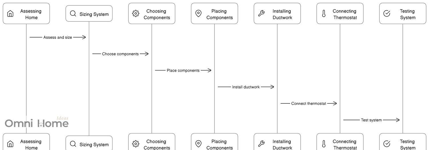The diagram above illustrates the following steps in the HVAC system installation process: