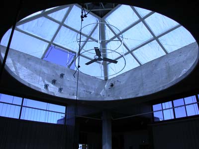 Skylight and ceiling fan in main building.