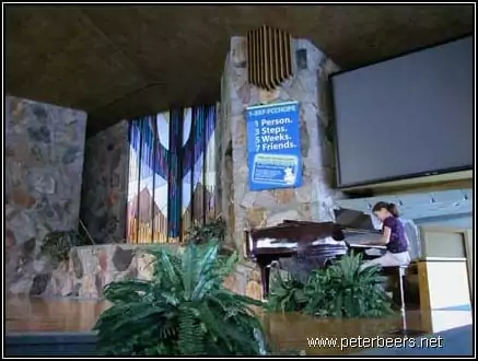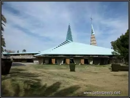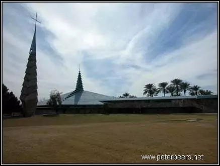 We planned our visit to this church PERFECTLY!!! We were coming from Brunch at the Biltmore hotel, so we were dressed nicely (Usually when we travel, we look like slobs. I don’t know why, since we don’t normally look like slobs at home. It just sort of works out that way). We arrived at the church about 30 minutes after everyone had cleared out from Sunday morning services. The only people around were the minister and his family. PERFECT!!!! We got a grand tour of the church given by the minister’s 13 year old daughter, Gretchen. She knew a lot about the church and its history. She also had some great suggestions for how Mr. Wright could have improved on his design. We got a very good introduction to their church and the great works they do for the community. If you get a chance to visit Phoenix, don’t miss this church. Call ahead and make an appointment to have a tour. They’re very open to people wanting to see their beautiful building, but they would like to have a little notice so they can schedule someone there to show you around.