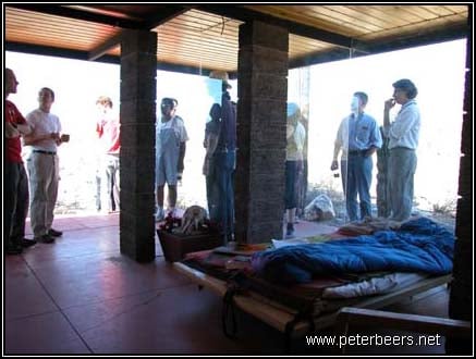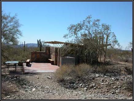 This is one of my favorite shelters. It is completely open on one side, but is sheltered from the wind. It does get cold at night, but a good sleeping bag is enough to make it confy. Just make sure you check your sleeping bag for scorpions before you climb in!