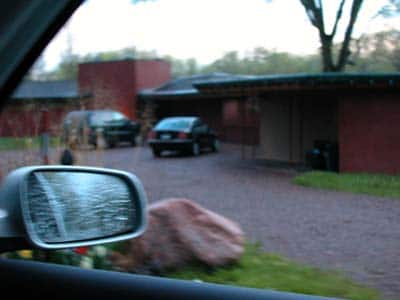 I would like to formally apologize for the photograph given above. This is as much of a photo as you can legally get of the Friedman house. The road has no trespassing signs on either side and there is no place to stop. It was obvious that these people did not want to be disturbed. I did not disturb them. I snapped this photo without even slowing my car. Obviously it was raining.
