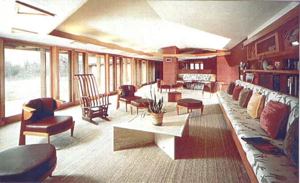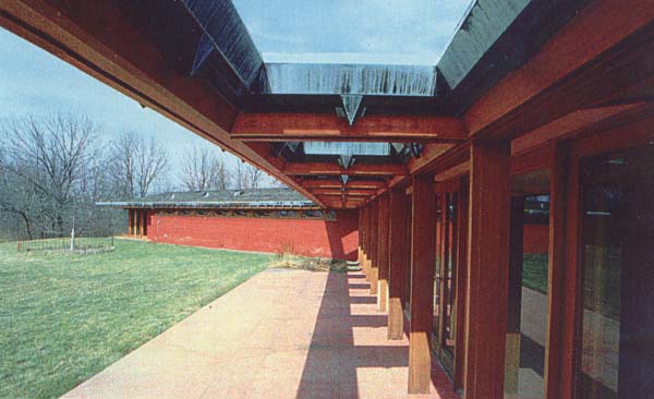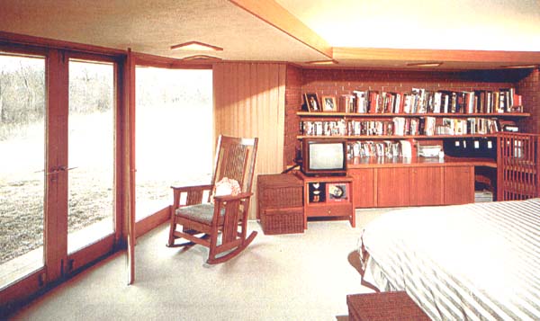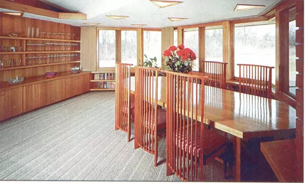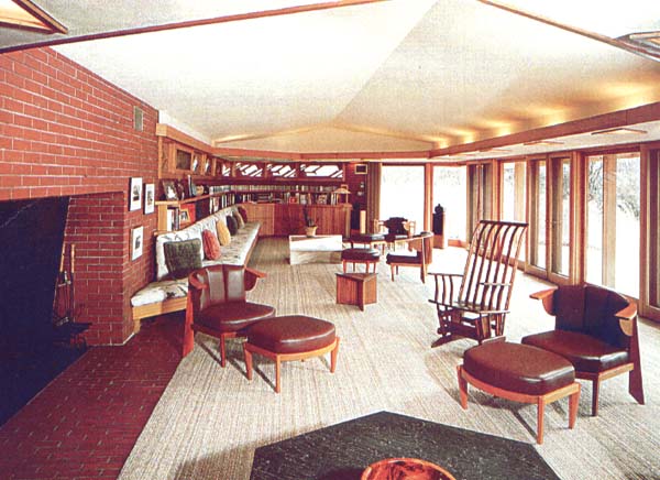 The Friedman house was designed in 1956 and was one of the last that Wright built before his death. It is located north of Chicago in an area that requires 5 acre lots for each home. That makes it so you feel like you’re out in the country, even when you’re in town. It appears that the 5 acre rule may have been relaxed somewhat since there are other homes in the area near this house.