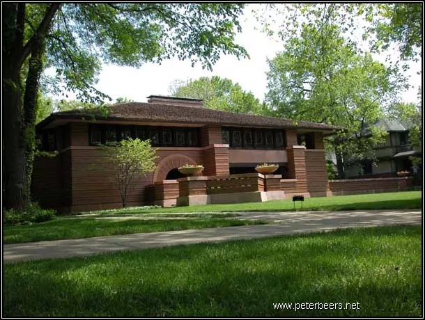 The home was built in 1902 and is a few houses down from his home and studio on Forest Avenue. It is one of many Wright homes on the street, but definitely one of the most impressive. The door arch is a wonderful throwback to his days with Louis Sullivan.