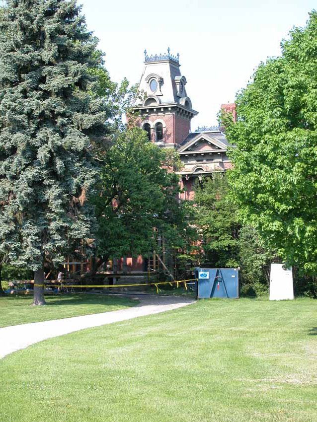 Another look at the Millikin Mansion. If you look carefully, you can see Mortitia and Gomez Adams peeking out through one of the tower windows. ;) Just kidding…