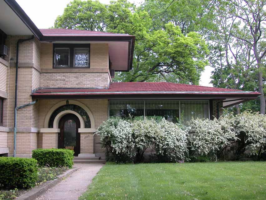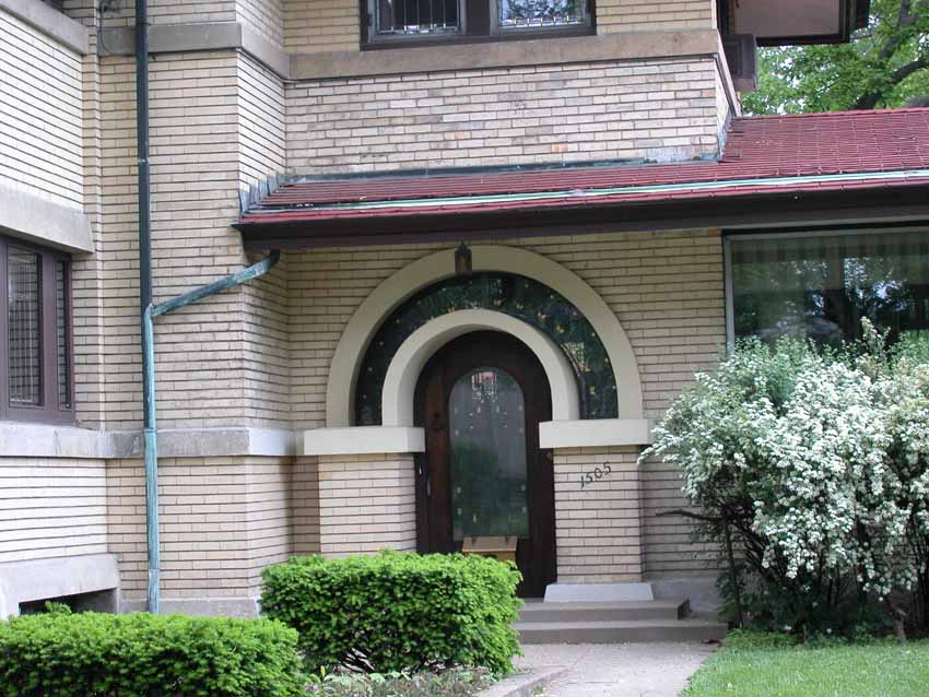 I love the glass work over the front door. It reminds me of the Dana house that was built two years later. I love Mr. Wright’s arched doorways. In a prairie style home, they look really beautiful.