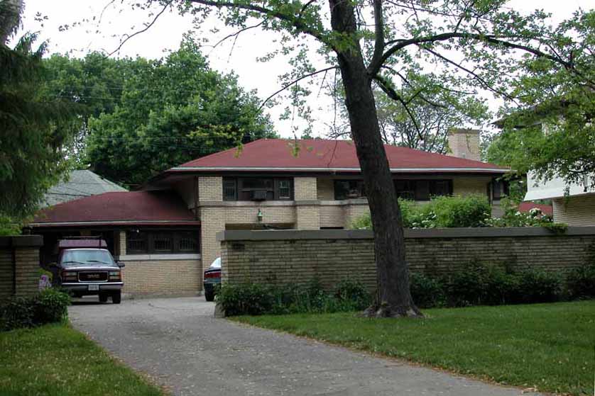 There are a few clients that commissioned more than one building from Mr. Wright. I find their stories quite interesting. As I made my way up through central Illinois in the spring of 2004, I found myself in Peoria, Illinois to see the Little’s first Wright home that was built in 1902, and added to years later. According to Storrer, the Little’s ran into financial trouble not long after moving into the home and only lived in it for less than a year. A decade later the Little’s built a second home designed by Wright in Minnisota.