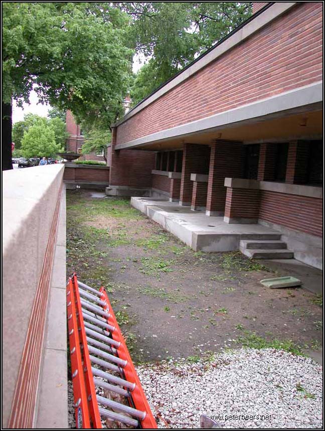 The amazing thing about this year’s visit to Oak Park and the Robie house is that the exterior work is basically complete. The masonry looked amazing. For the first time in my lifetime, I’m able to get a good idea of what Wright really intended for the Robie house. I’ve said a lot about this home in previous Robie pages. I’m just going to let the photos talk for themselves.