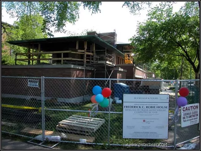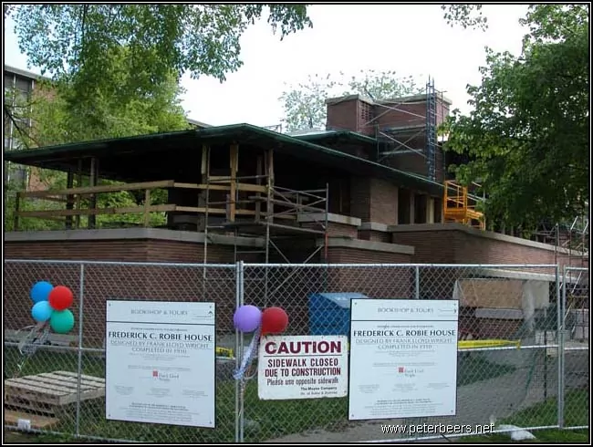 The Frederick C. Robie house designed and built by Frank Lloyd Wright in 1908is in the middle of a 10 year renovation project. At this point, the homeis partially dismantled, but they’re still giving tours of the house. We’ve visited the house every spring over the last 5 years and it has beeninteresting to see the progress done on the renovation. This is by far themost dismantled that I’ve seen the home. That made the tour even moreinteresting. We really got to see the inside construction of thehouse. Hopefully some of these photos will give you an idea of what wesaw.