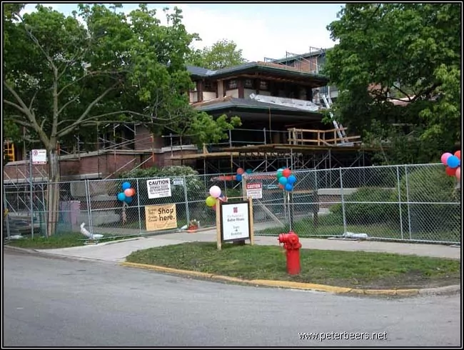 This is the front of Robie. It is completely fenced inwith dumpsters out front and a lot of scaffolding around. The gift shop, locatedin the garage, is still intact and open for business.