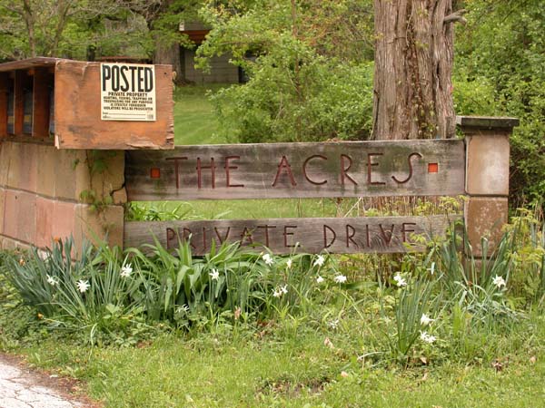 This visit was a heartbreaker for me. This particular site seeing trip was planned on the spur of the moment. I didn’t have time to do my normal research. I often times will contact owners of Frank Lloyd Wright homes to see if it is okay with them for me to photograph their homes. I couldn’t do it this time since I had only a week or so to plan this whole trip. That isn’t enough warning to be polite. As result, I was faced with the sign photographed below and some very tempting peeks at the homes that lay beyond.