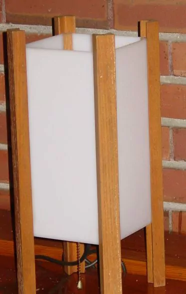 This lamp was either designed by Wright or Alden Dow (son of Dow Chemical founder Herbert Henry Dow). Dow was a Wright apprentice for a few years in the early days of the Taliesin Fellowship. Though he never really lived at Taliesin (he and his wife had an apartment in town), he was an active member of the group and was responsible for taking countless movies of Wright and the early apprentices. Dow went on to start his own organic architectural firm in Midland, Michigan, where he was active into the 1970s.