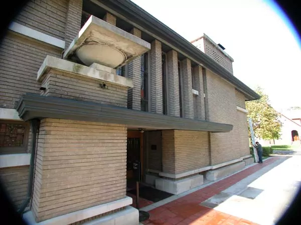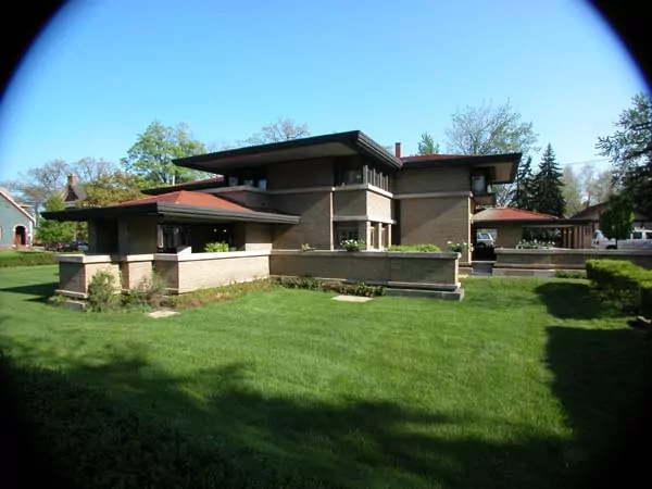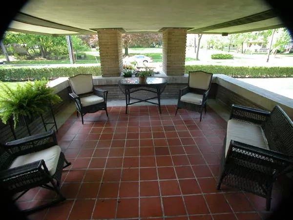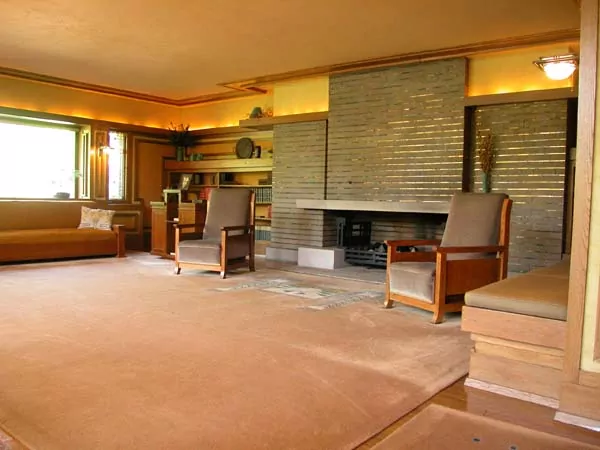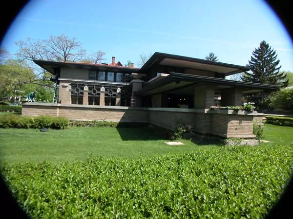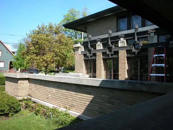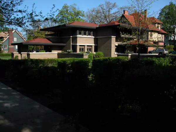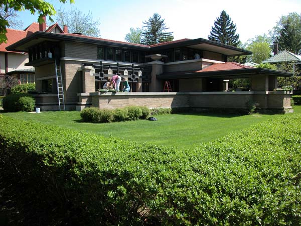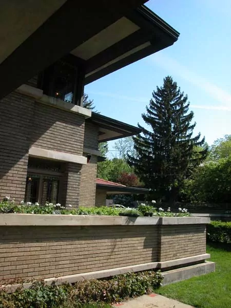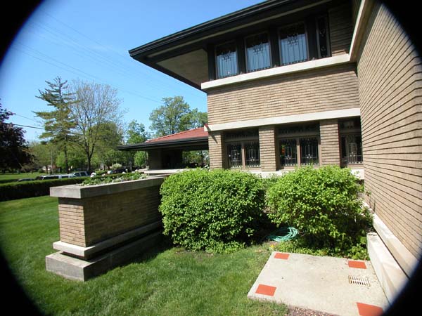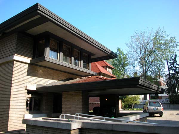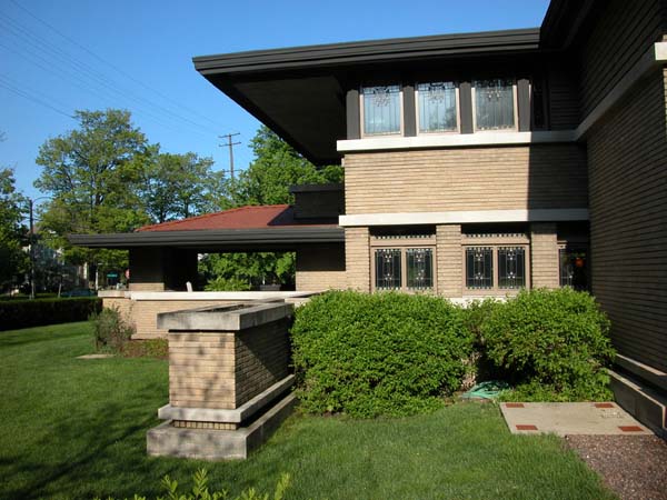 The home is a beautiful statement on the corner lot where it resides. There is plenty of room on the lot, yet Wright moves the back of the house and driveway right up against the lot line. This gives a much greater sense of space around the house.