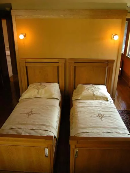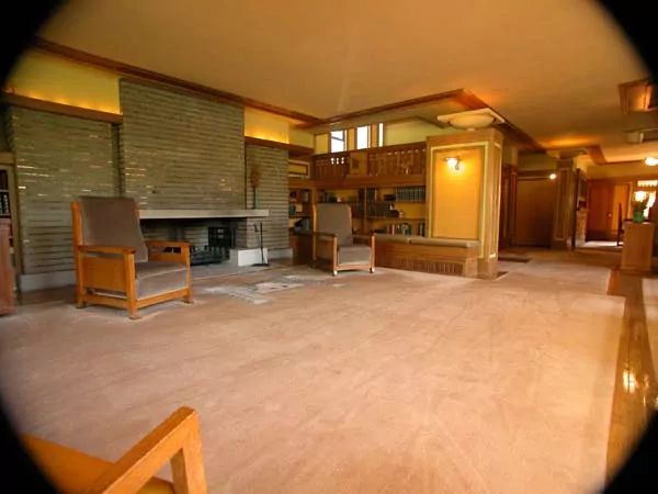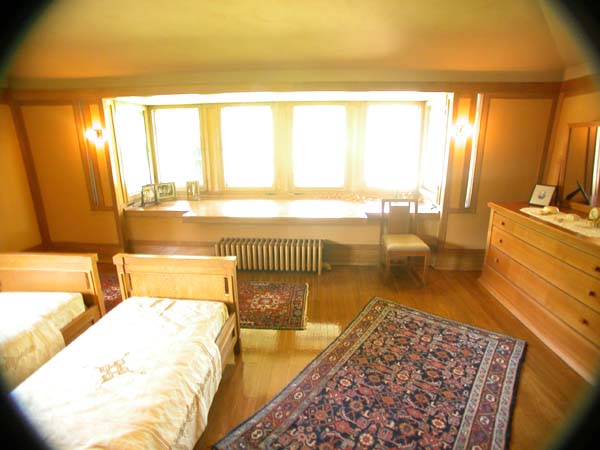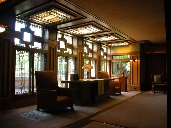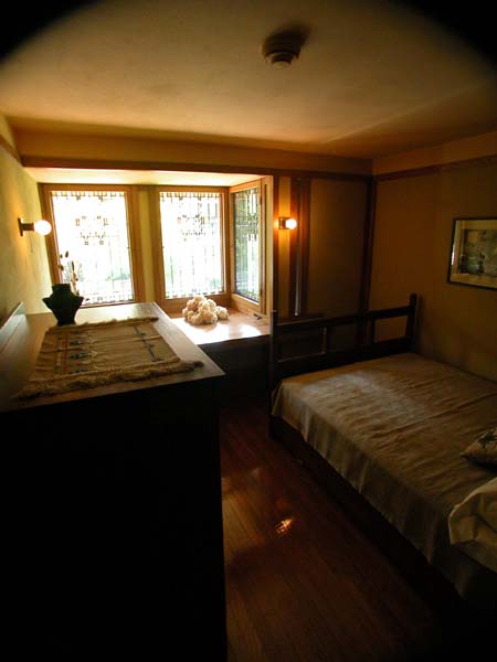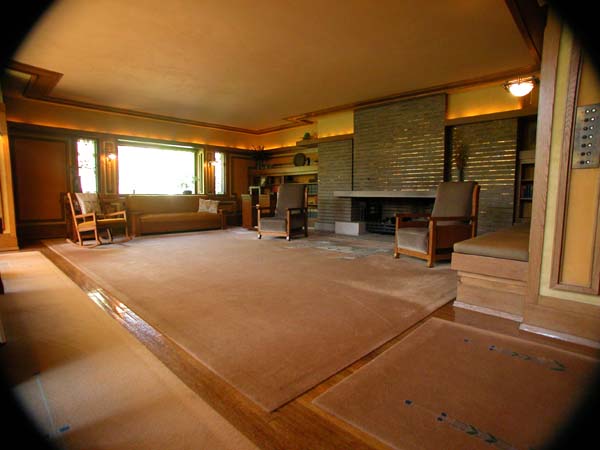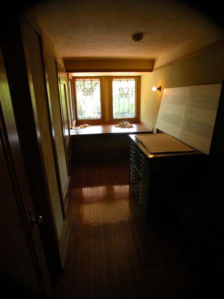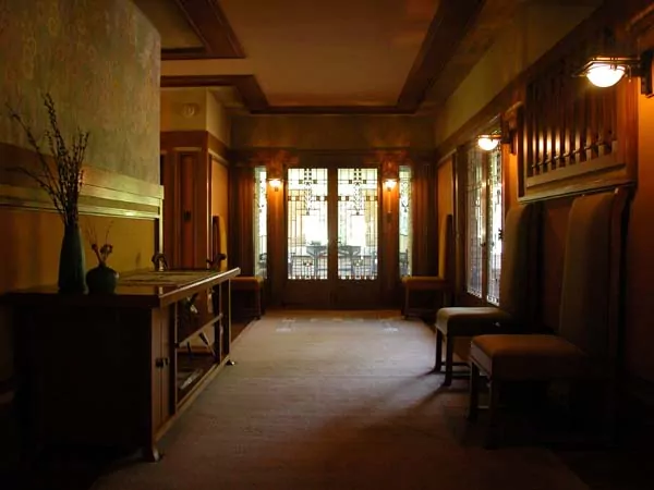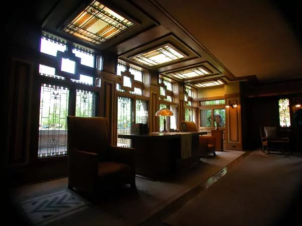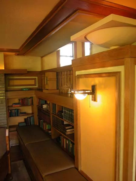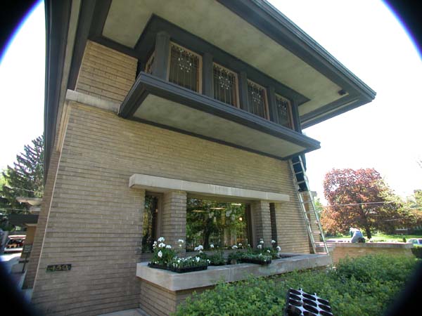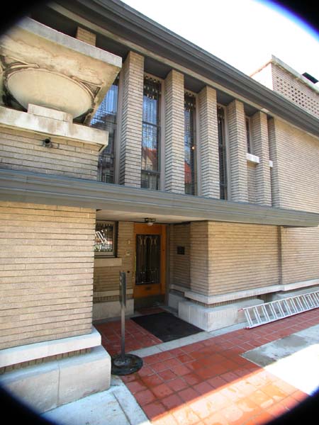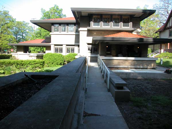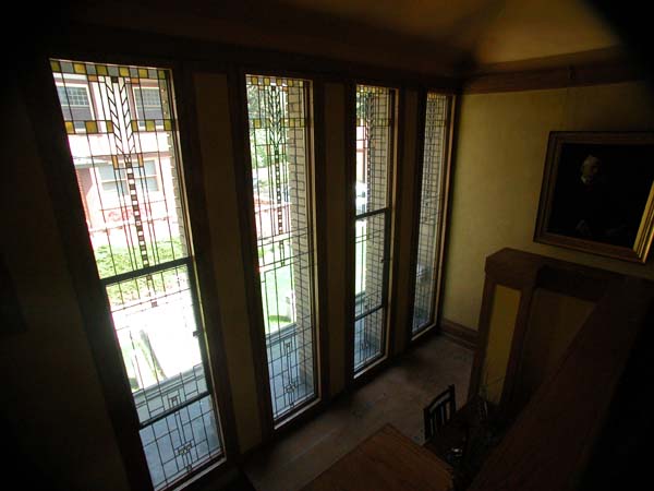 Wright designed many of his Prairie homes to have a hidden entrance. This was really the second of them to use this design (after the Beachy house in Oak Park). This is a design element that is easily seen in other homes like Robie and Allen-Lambe. The idea is that if you have not been invited to the house, you won’t feel particularly welcome just walking up and knocking on the door. This enhances privacy.