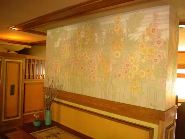 The mural by George Niedecken had been painted over. It had to be uncovered and and restored. This was an amazing and painstaking process.