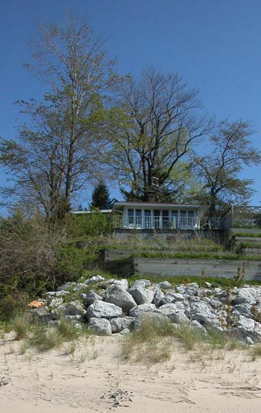 The W.S. Carr house was built in 1916 on the bluffs overlooking Lake Michigan. You can see the lake in the distance in the first photo. You can also see the view from the beach up to the house in the second photo. Unfortunately if you go to that spot now, you won’t find this same view. No, Lake Michigan didn’t move. The house did. The Carr residence was demolished in 2005. If these photos look familiar to you, you may have seen them in Preservation magazine (the National Trust’s monthly publication). It is sad to see any of these homes be torn down, but especially one as old and well placed as the Carr residence.