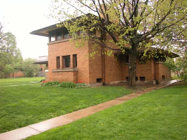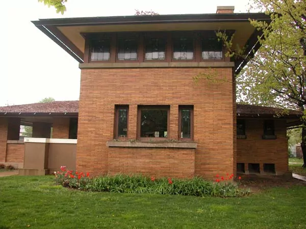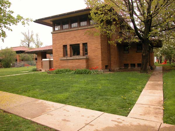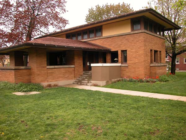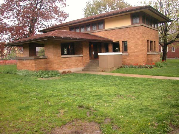 The Barton house is currently used as the visitor center for the Darwin Martin House. It contains the book store and gift shop. It is included in the tour of the Martin complex. It is a beautiful home that explores many different features of a prairie style house. The banded windows, large overhanging eaves as well as the prominent fireplace make it stand out as a prairie design.