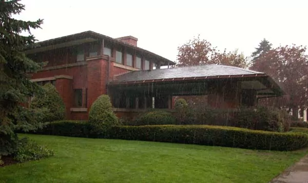 The home is built from red brick that Thomas Heinz suspects in his book “The Vision of Frank Lloyd Wright” may have came from the same batch that were used for the Larking building.