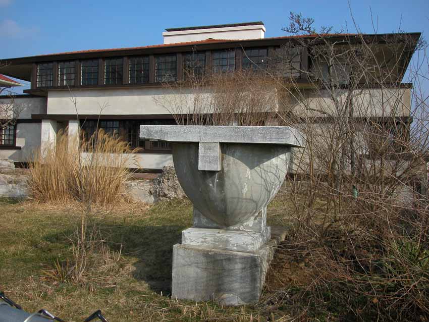 The largest urns that Wright designed for any of his homes. Both of them survive in the front of the Westcott House.