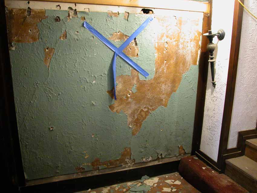 This is inside the main entrance of the house. This is where the paint excavation is being done. The chemist is able to go back and look at the original colors and composition of the paint.