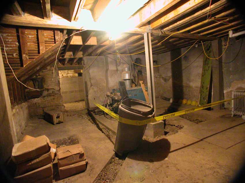This is the part of the carriage house that was used to store the car. The area under the ladder is the beginning of the excavation of the grease pit. Many early garages had them since there were few mechanics shops and people tended to work on their own cars, or hired mechanics to come to their home to work on the cars. This particular grease pit held a lot of interest for the people restoring the Westcott house. One of the people who lived here years ago said that many of the original furnishings were stuffed into this space before it was sealed over. They opened it up in hopes of finding a treasure trove of original artifacts. It didn’t work out that way. All they found was Jimmy Hoffa’s body. (just kidding)