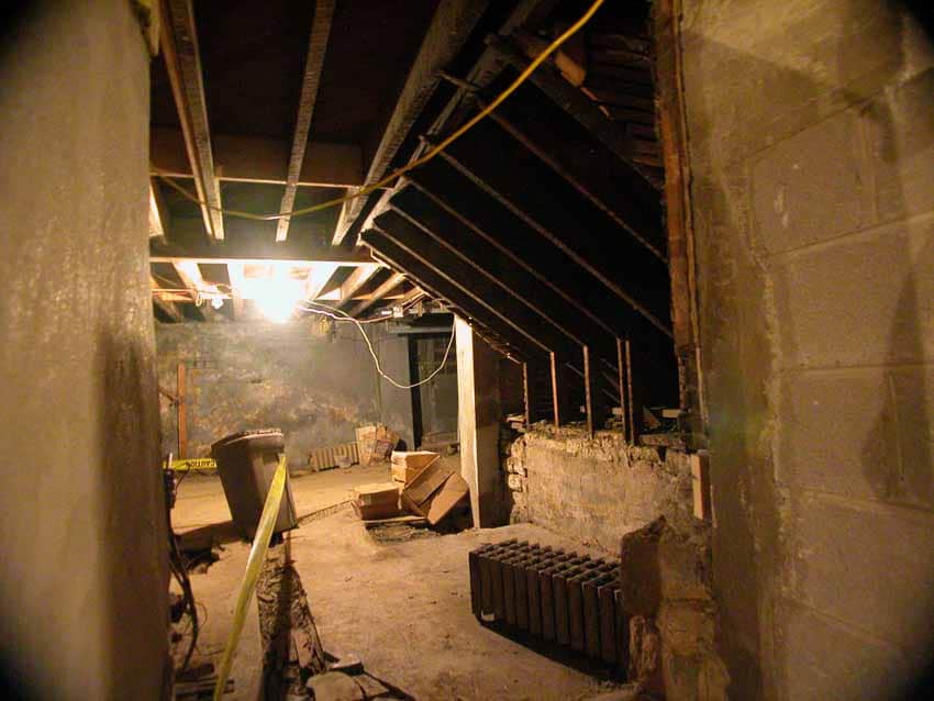 The small servants’ stairs were removed and an incinerator was put in some of the space. You can see the burned walls at the back of the incinerator. It is a miracle that the whole place didn’t burn down. We’ll see this again later.