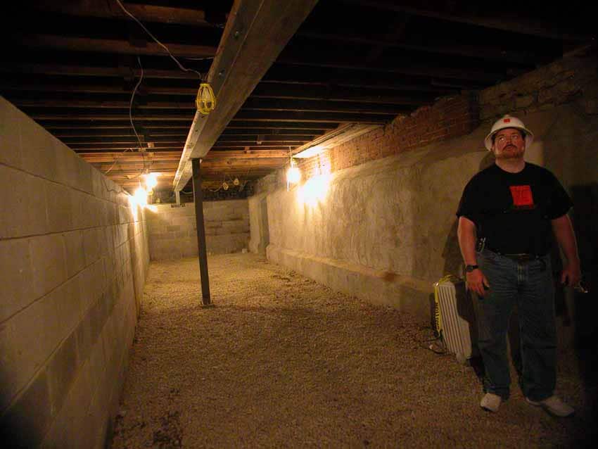 This part of the basement was originally just crawl space. This is my friend Matt giving me the tour. This will be used for storage when the home is opened to the public for tours.