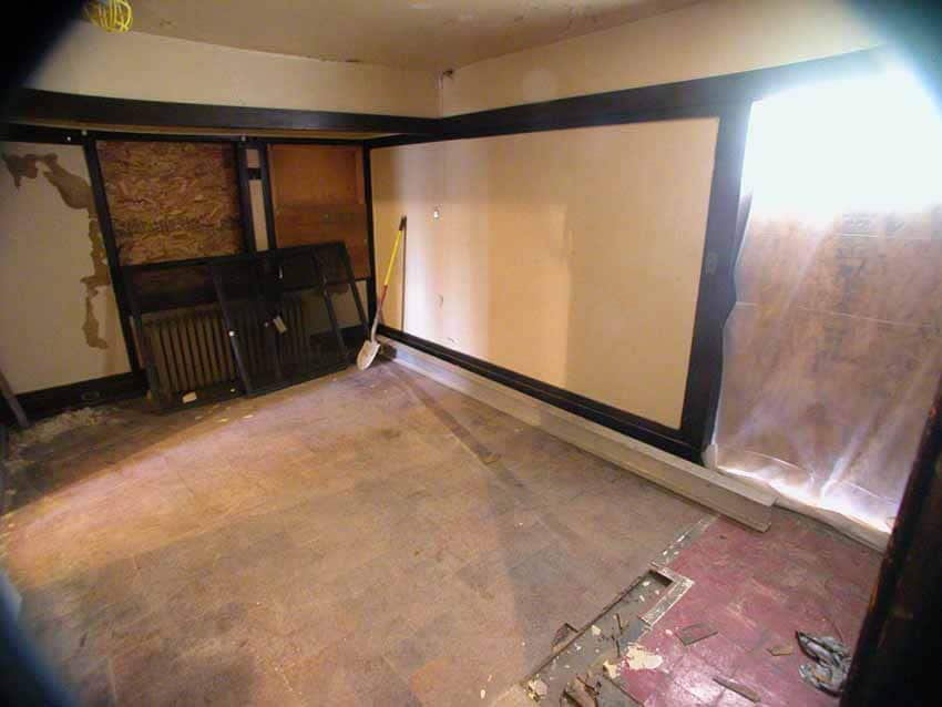 As is evident from these photos, the home is under seriousrenovation. In the last year or so, all of the tenants were moved out andthe renovation process started.
