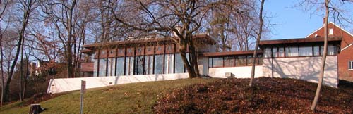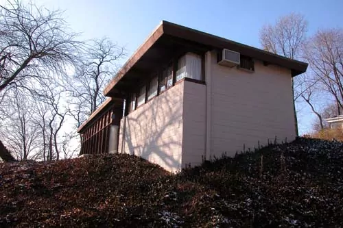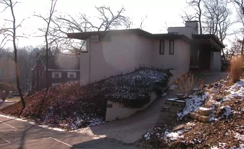 A few years ago, I had the opportunity to tour the Boulter house. I was excited to get to walk around the inside and enjoy its space. It was early spring and the home was VERY warm inside. The solar properties of the design were working quite well. I imagine that it would be quite warm in the summer. They had quite formidable curtains to keep the sunshine from baking the whole house. The curtains also add some much needed privacy to the home. One of this home’s properties of this house that is very uncharacteristic of Wright is its total lack of privacy in the main living space. Anyone from the street can look right up inside.
