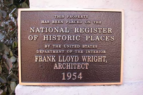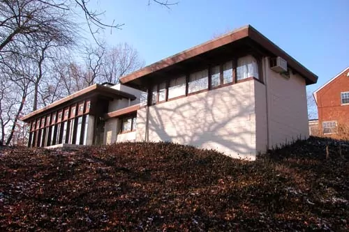The floors of the house are all done in red concrete. The owners have added central air conditioning to supplement the cross ventilation designed by Wright.