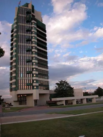 The tower is now used as the home of the Bartlesville ArtCenter. The have tours of the building at 11am and 2pm Tuesday throughSaturday and 2pm on Sundays. You can get information at their website. The people were very nice in trying to accommodate me and answerall of my questions. I was pretty upset that I wasn’t able to make it tomy tour on time.