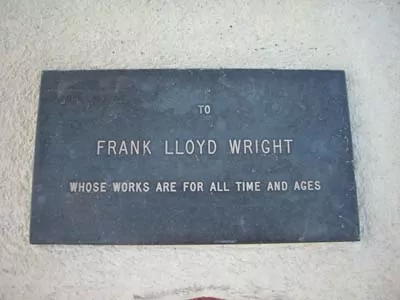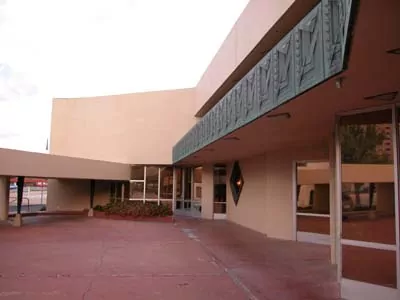 The Community Center was designed by Wesley Peters, one ofWright’s apprentices, in 1979 and built under the supervision of the Frank LloydWright Architects from Taliesin West. It was originally designed as thefirst of a three phase project that also included an exhibition hall andhotel. It was being financed by the Phillips Petroleum Company. Theearly ’80s were not kind to the oil business in Oklahoma and the second twophases were never built.