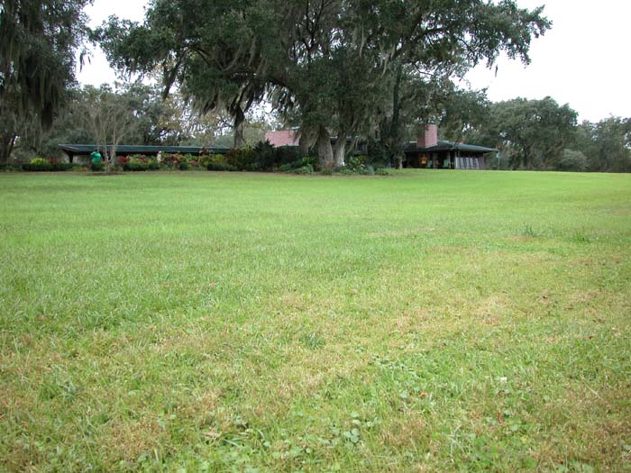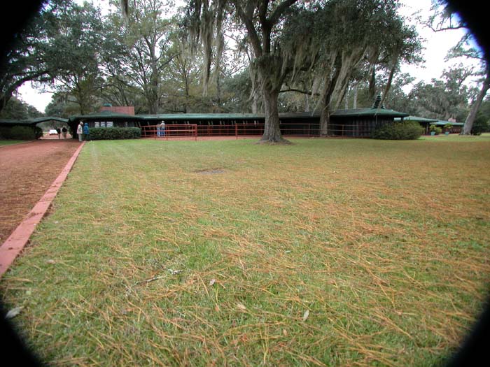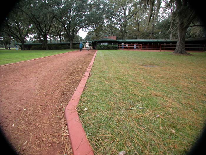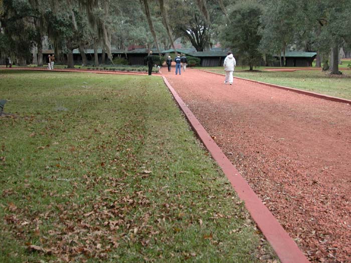 The driveways are all done in red gravel with Cherokee red concrete edges. The Spanish Moss definitely tells you that you’re in the South.