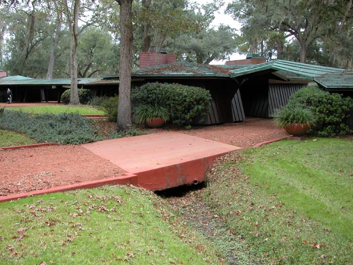 Mr. Wright designed the Auldbrass Plantation to be a farm for raising experimental crops for growth in different climates in Europe and Africa. The client for this plantation was an efficiency expert, so Frank Lloyd Wright’s appreciation for utility in his organic architecture fit well with with his ideas.
