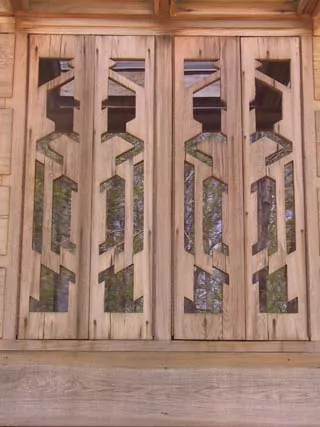 The home is designed so that the roof is held up by masonry pillars around the fireplace and at the end of each wing of the home. The benefit of this design is that the walls are not required to be structural members of the home. As a result, the walls of the Pope-Leighey home are made from two planks of cedar sandwiched around an inner core of plywood. The walls are 3 thick and seem to be quite good at keeping the cold out.