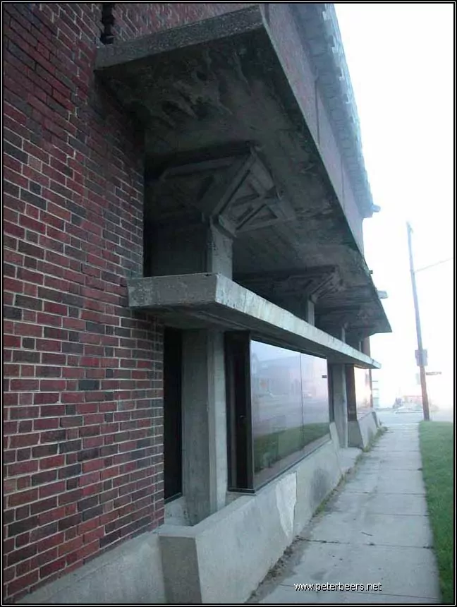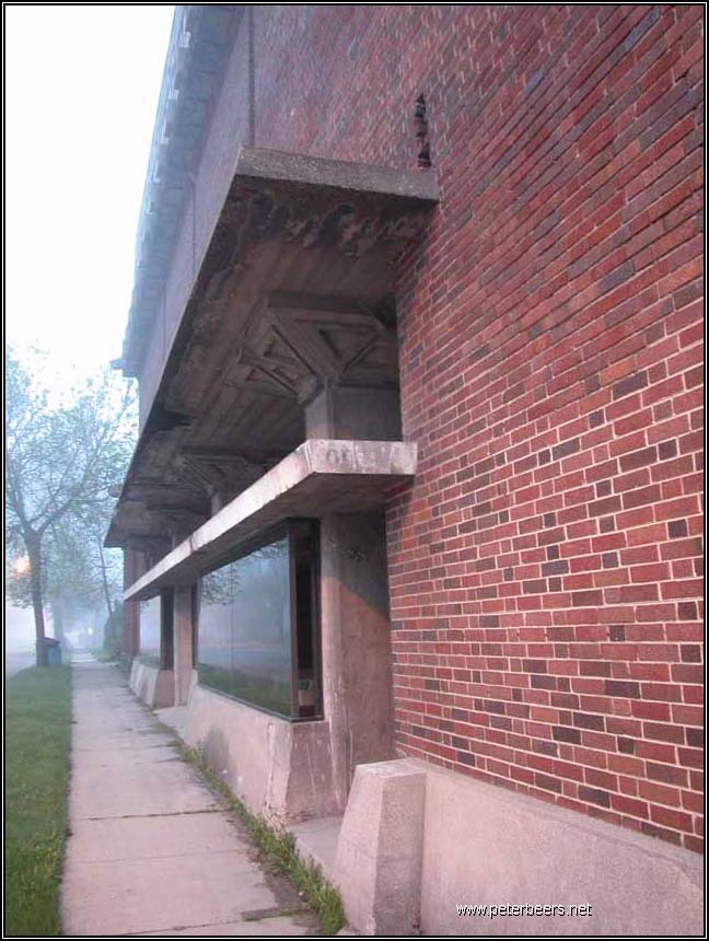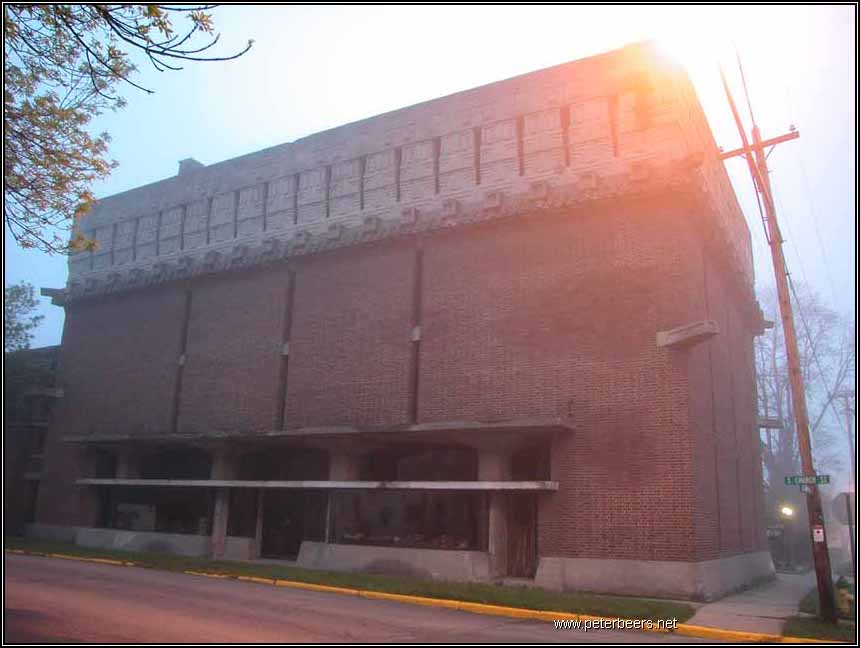 It has been written that Frank Lloyd Wright was born in Richland Center, Wisconsin. (It has also been written that he wasn’t). The building you see above is the one building that he designed in the town that was famed to be his birthplace. According to Storrer, Albert Dell German was owed money by Mr. Wright. Instead of insisting on payment, he accepted a design for his new warehouse instead. It was designed as a place to store wholesale goods with a small retail space in order to sell them.